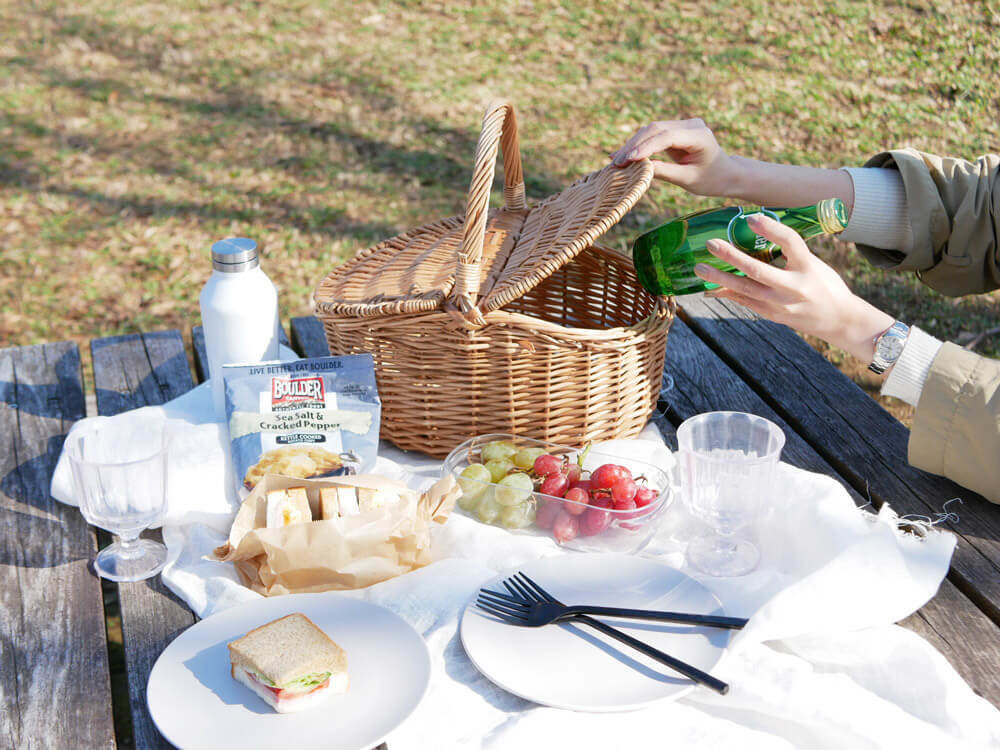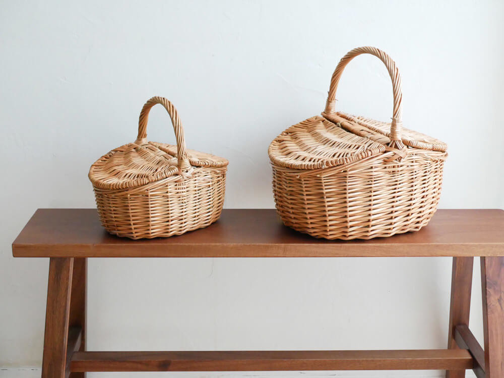 自然素材で作られたバスケットはピクニック気分をより盛り上げてくれますよ。