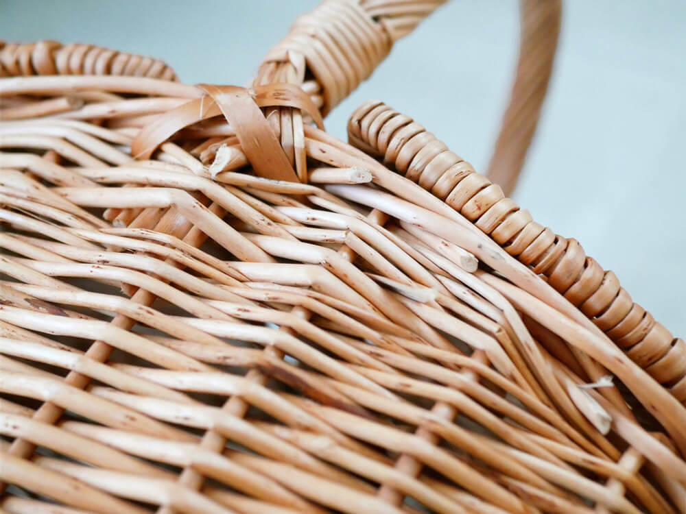 柳の枝の皮をはいで乾燥させたヨーロッパでは代表的なかごの素材です。しなやかさと通気性がありとても軽いのが特徴です。