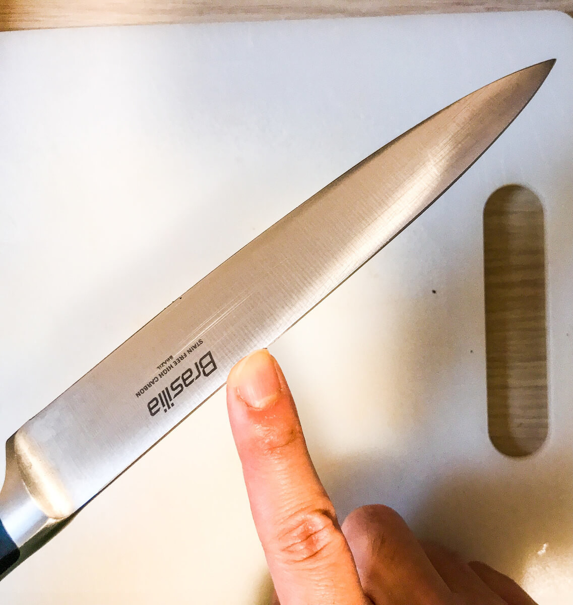 「包丁の背」で皮をむくと力が要り、後片付けが大変
