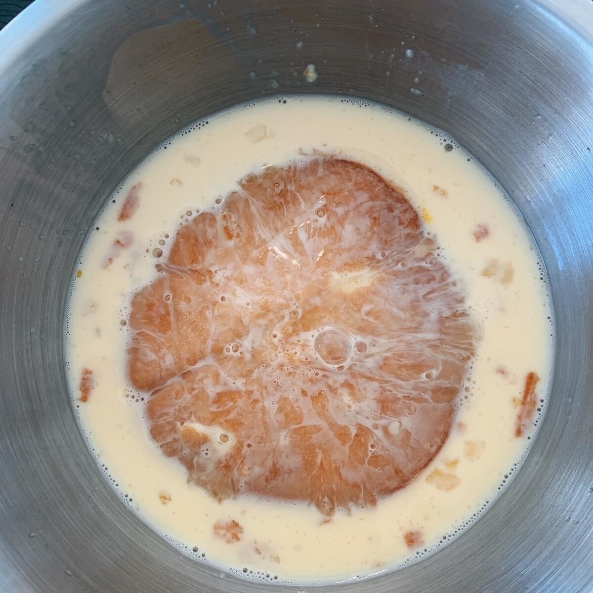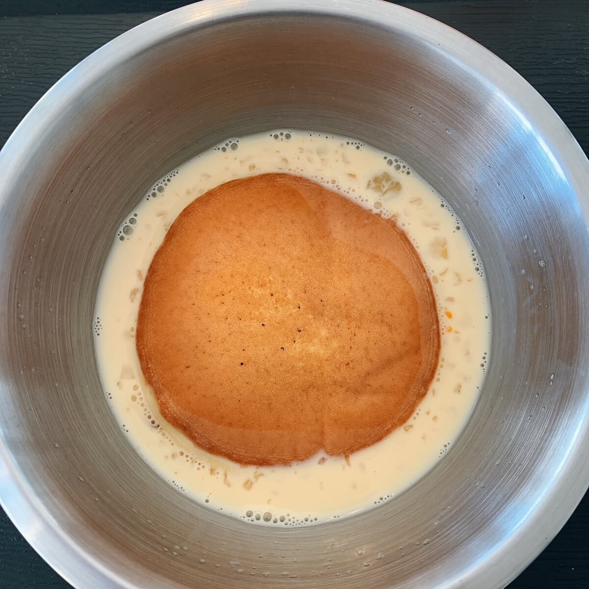 ボウルにどら焼きを入れ、何回か引っくり返しながら「10分間」漬け込みます。