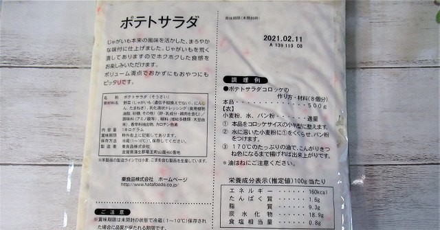 パッケージの裏にはポテトサラダコロッケのレシピが記載されています。