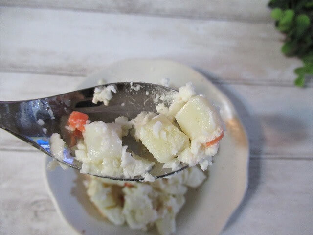 業務スーパーの「ポテトサラダ」は、あまりマヨネーズ感は感じられずサッパリした味わいからか、飽きずにたっぷり食べられます。