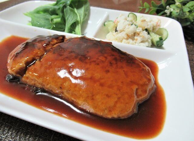 びっくりドンキーで人気の「ポテサラパケットディッシュ」もどきのハンバーグを作ってみました。