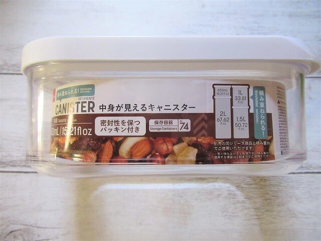 ダイソー 中身が見えるキャニスター450ml 110円(税別)