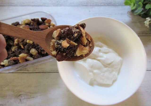 これなら毎日たっぷりのナッツ入りヨーグルトが食べられて美容や健康にも◎。ちなみに自家製ドライフルーツナッツはヨーグルトだけではなく、サラダのトッピングとしても使えますよ。