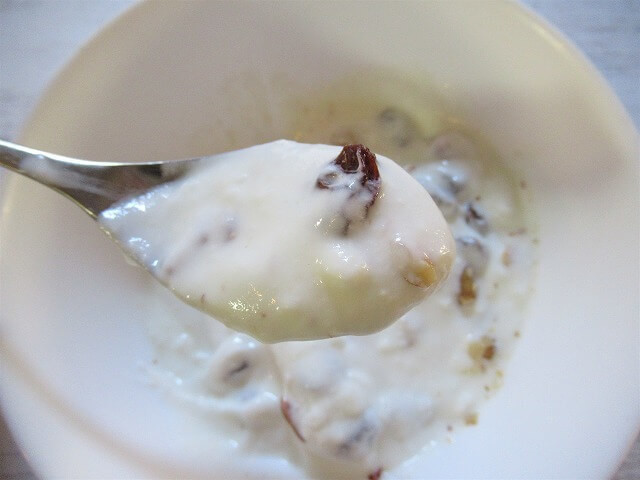 ザックザクのアーモンドとクルミの歯ごたえも最高!コンビニのナッツ入りヨーグルトとさほど変わらない味で大満足です。