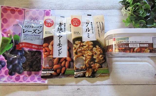 ダイソー「中身が見えるキャニスター」にドライフルーツナッツを保存してみた
