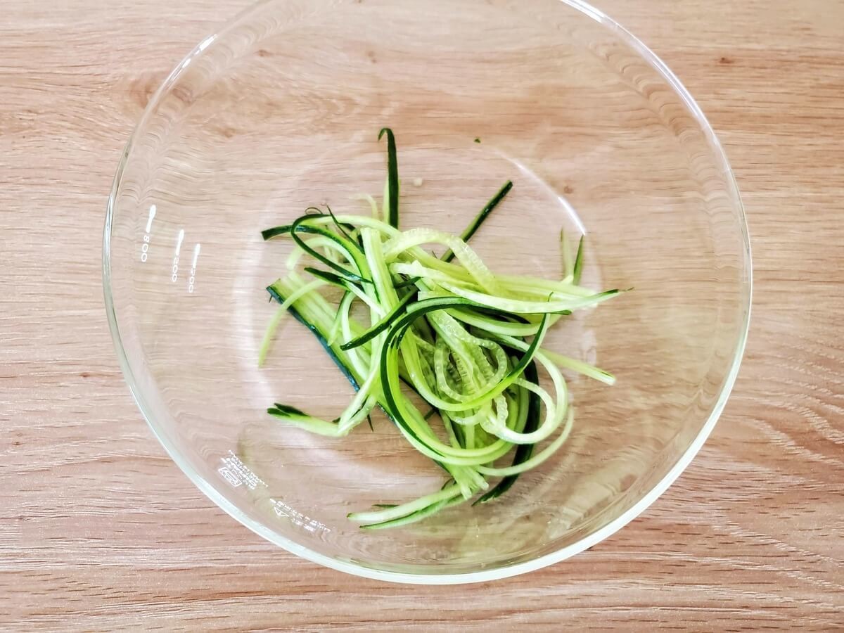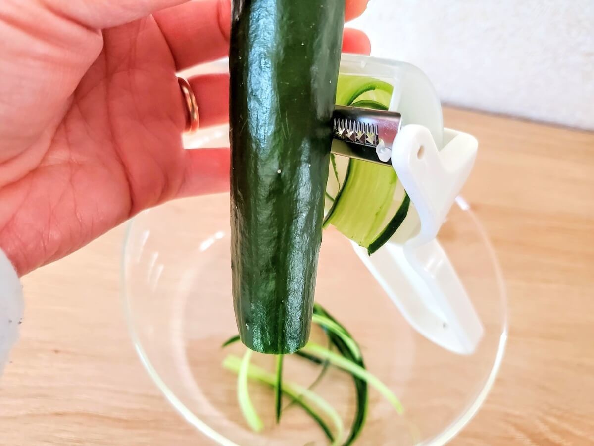 きゅうりがカバーに添うように、千切り状にされていきます。