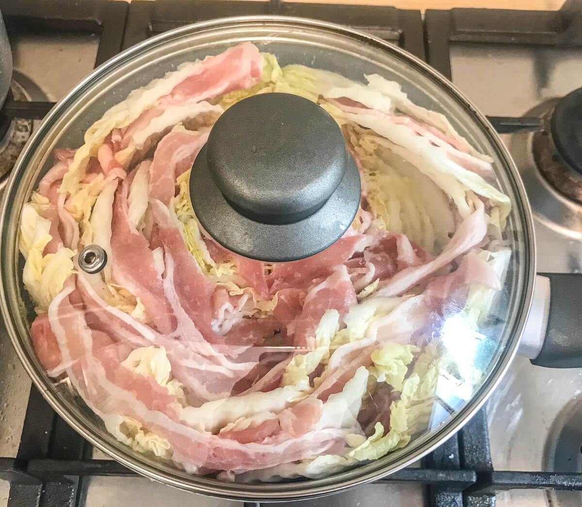 白菜&豚肉レシピ②白菜を鍋いっぱいに詰め込む