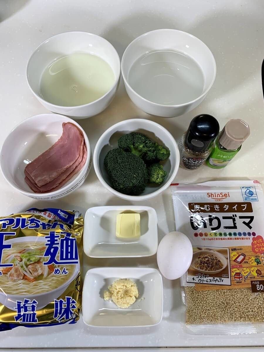 - インスタント麺...1袋 (今回はマルちゃん正麵塩味を使用)