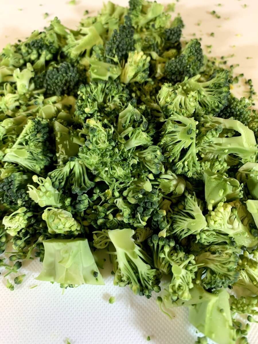 ブロッコリーはかなり細かく切りましょう。大きいままだと、やわらかくなるまでに時間がかかってしまいます。
