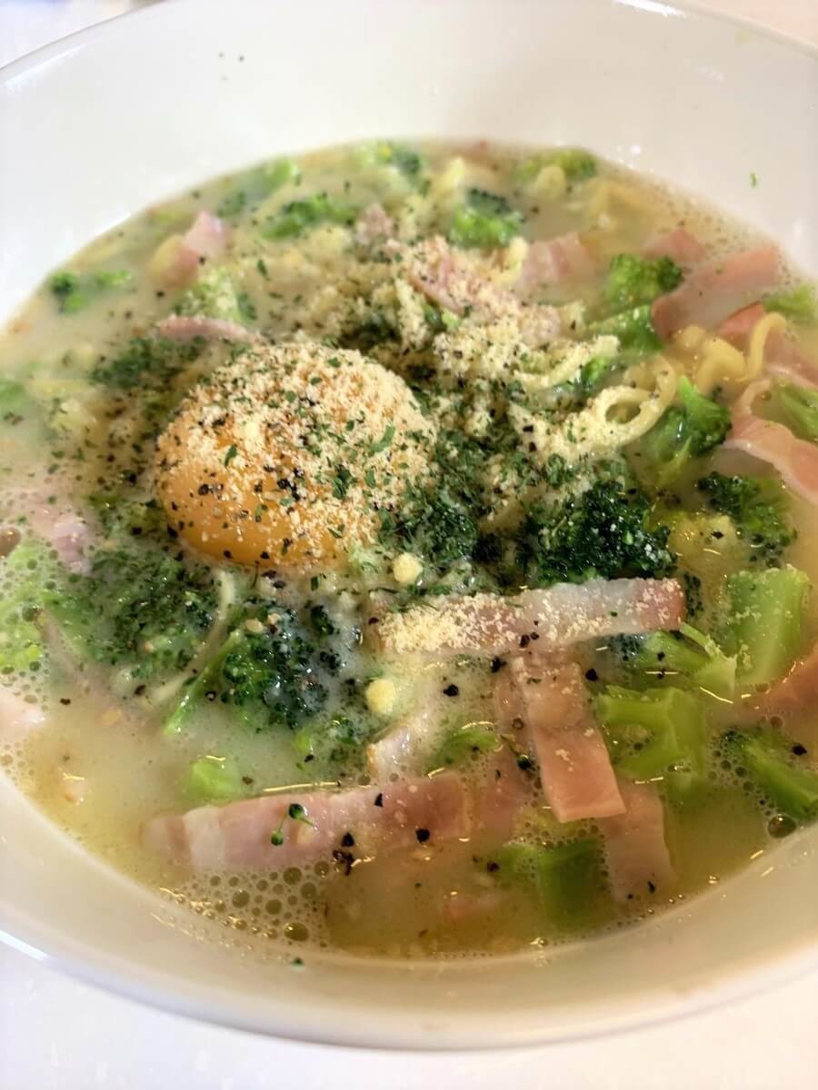 食べる前は「インスタントラーメン感を隠し切れないんだろうな...」と侮っていました。ですが!食べてみて驚きました。これはもはや、カルボナーラです(笑)!