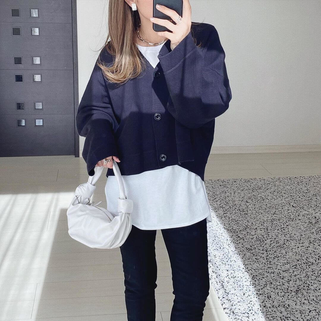 今回は着回し力が高いオフホワイトとブラックカラーのカーディガンを使った、春コーデをお届けしますね。