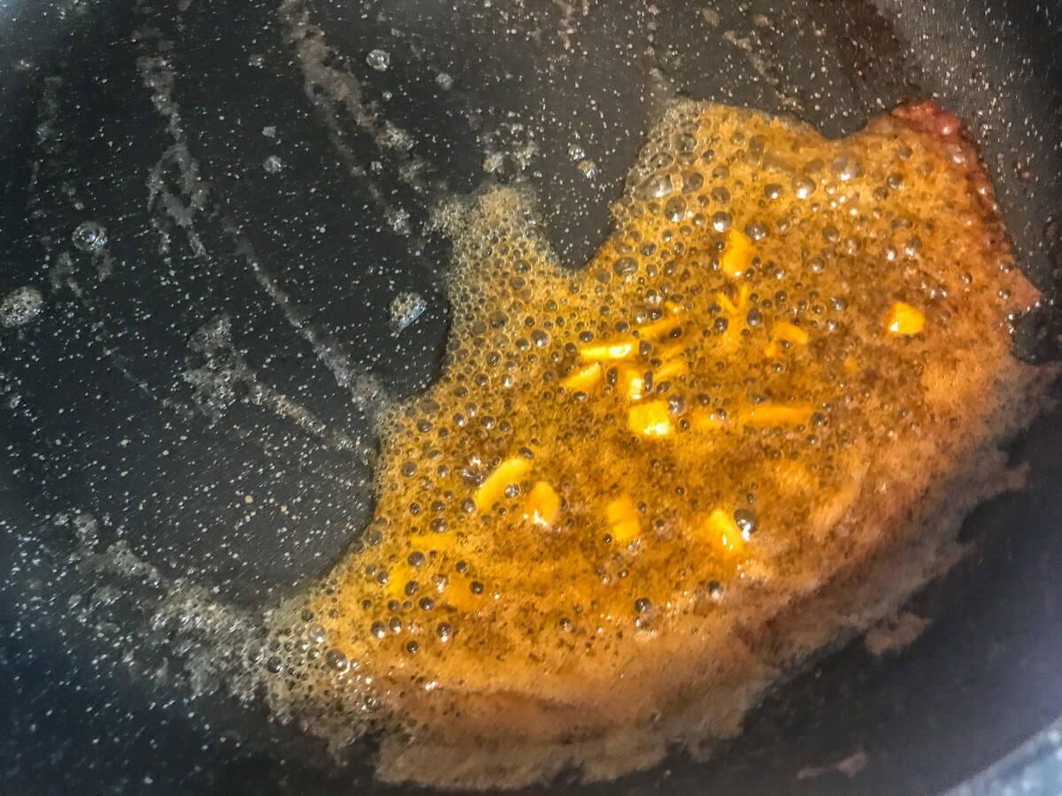 餅おかずレシピ⑤【A】特製ダレを作り、お餅にかけて完成!