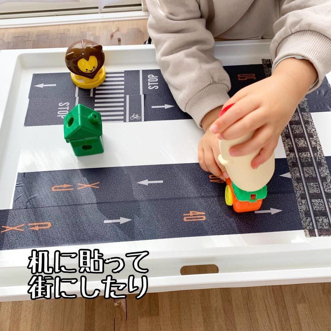 道路や線路の模様がプリントされており、車や電車が大好きな子どもは大喜びしてくれるはずです!子どもの想像力で、どんな街が作られるのか見ているだけでワクワクしてしまいそうですね。