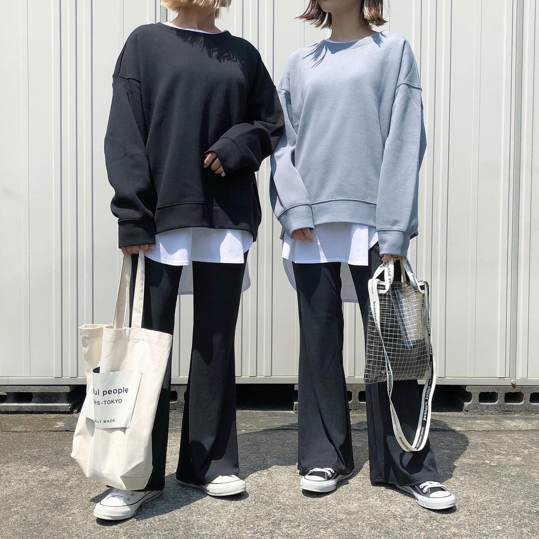 「コットンロングシャツテールT」はワイドパンツとも相性抜群です。