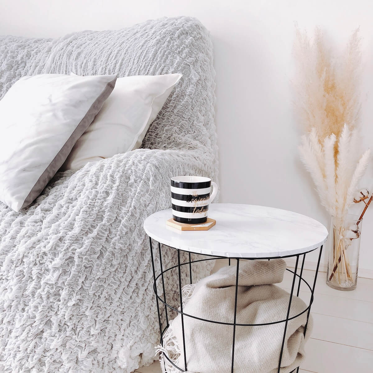 天板部分は開けられるので、サイドテーブル兼ブランケット収納に。
