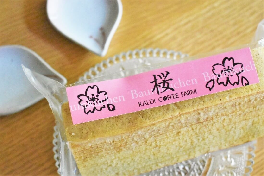 こちらもカルディオリジナル商品の「桜バウムクーヘン」。季節限定なのでこの季節にだけ出会える味です。