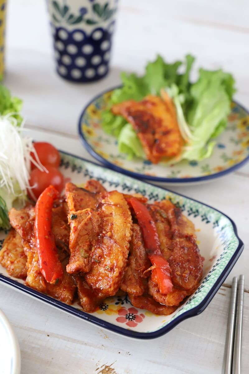 ヤンニョム豚バラ焼肉に味がしっかりとついているので、少しの調味料を足すだけで味が決まります!