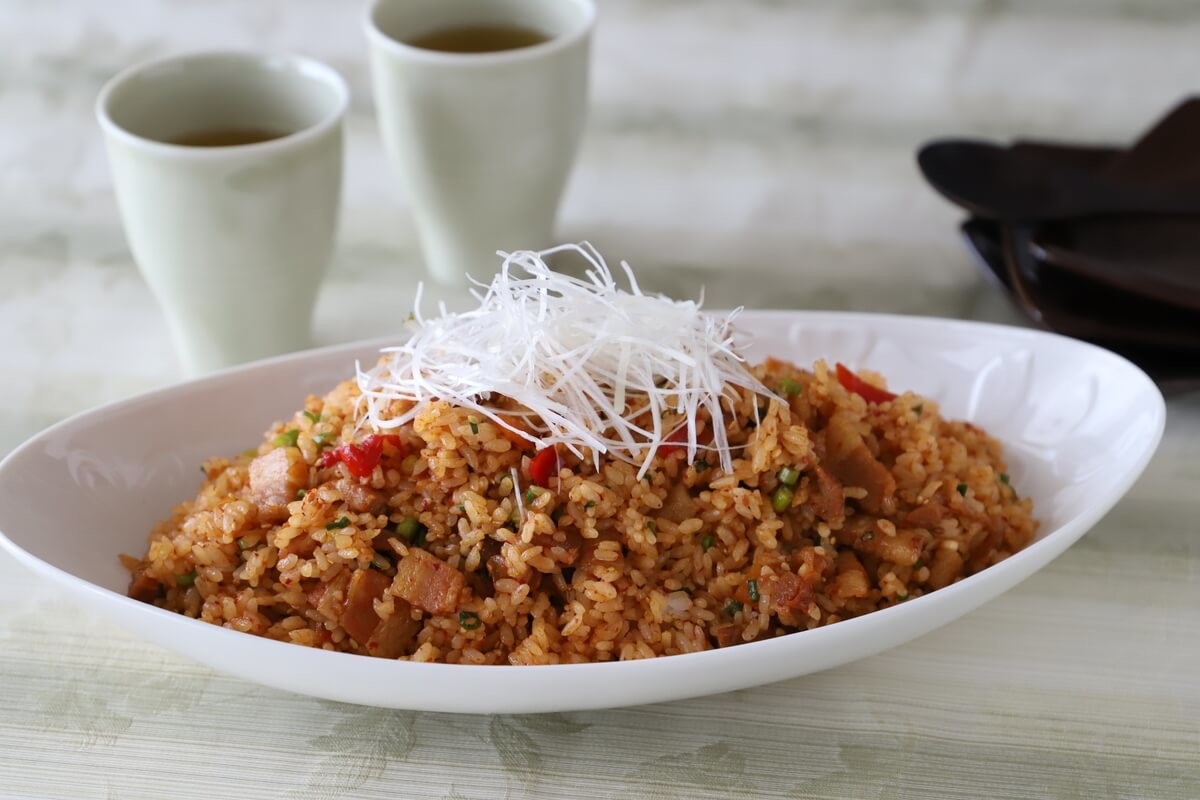 2へあたたかいご飯を入れて全体に馴染むようによく混ぜ、馴染んだら小口切りにしたネギ入れて軽くあえる。