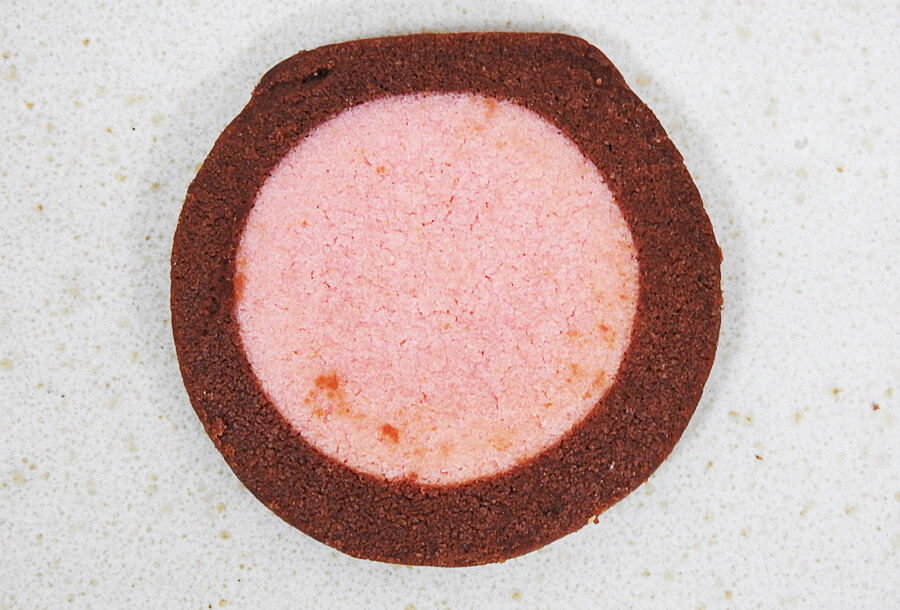 丸いピンクの苺生地が印象的な「苺チョコ」。今まで紹介してきたクッキーよりもややしっとりした食感で、甘みが感じられました。苺の酸味と甘さ控えめのチョコの味がマッチしていましたよ。公式HPによると、冬季限定クッキーのようですね。