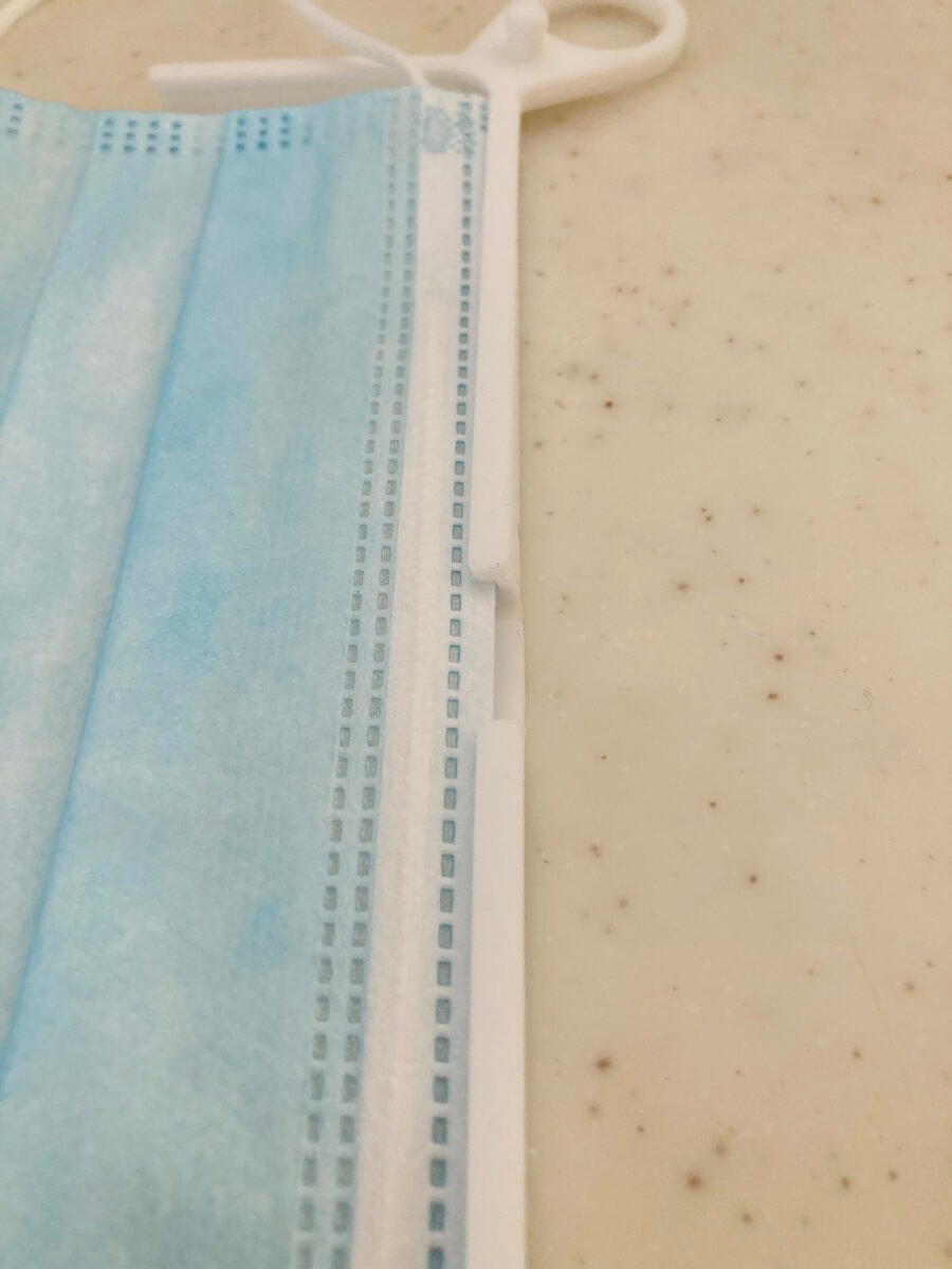 きれいにマスクの収納ができました!留め具は一度穴にはめ込んだら抜けにくくなっています。輪っか部分を手に持って何度も振ってみましたが、外れることはありませんでした。