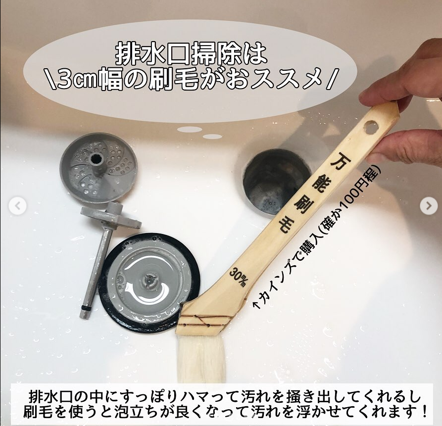 刷毛(ハケといえば障子の張り替えで使うイメージですが、なんと排水口のお掃除にも使えるんです!これは画期的なアイディアですね。
