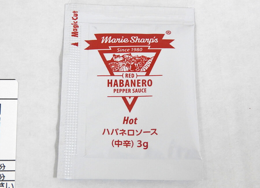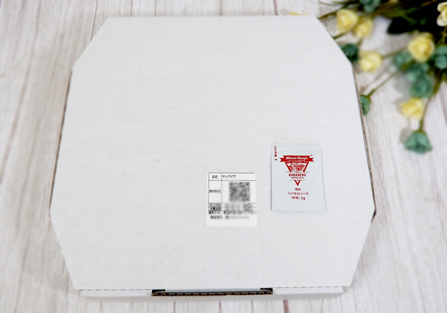外箱には、ハバネロソースがついてました。半額だからといって、いつものピザと違った点はないようです。