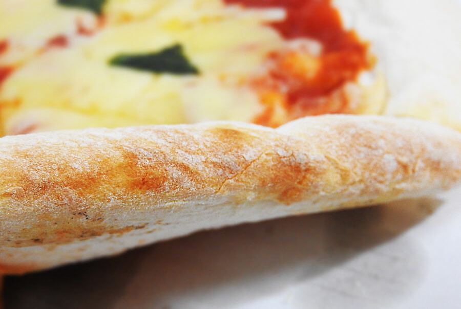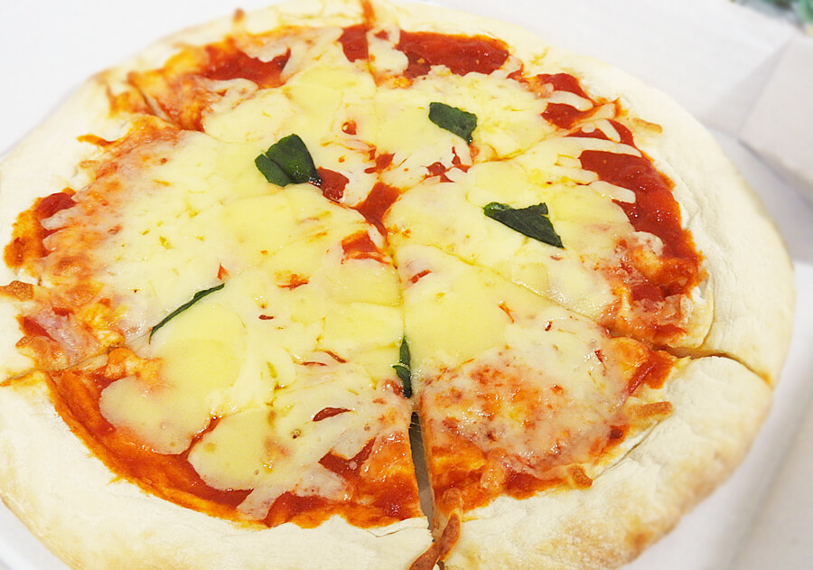 ピザ生地はぺちゃんこではなく、やや厚みがありました。口の中に入れるともっちりしながらも歯ごたえがあり、それなりに満足感があります。