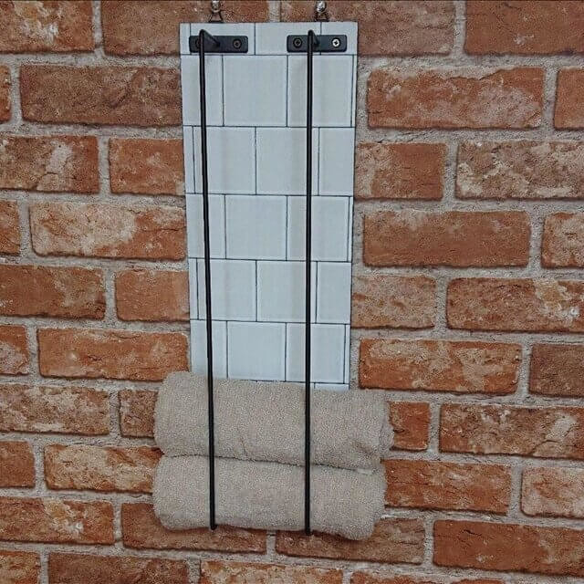 白いタイルと黒のアイアンバーのモノトーンカラーなので、比較的どんな洗面所にも馴染みます。毎日使うタオルだからこそ、パっと取り出しやすいものが便利ですよ!