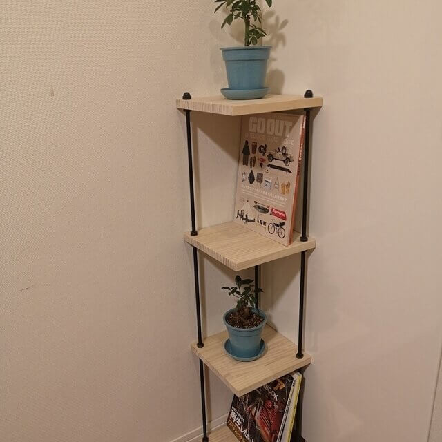 植物は置きたいけど、ラックを置くスペースが限られている!という方におすすめの「コーナーラック」です。正方形と縦型の省スペースなので、すっきりとおしゃれにディスプレイできますよ。