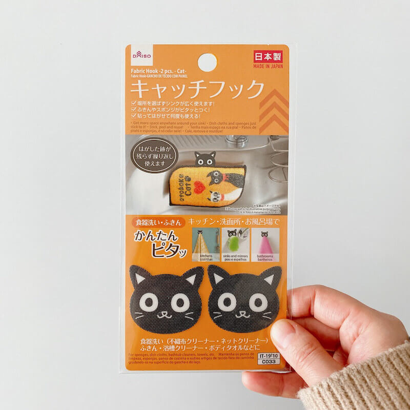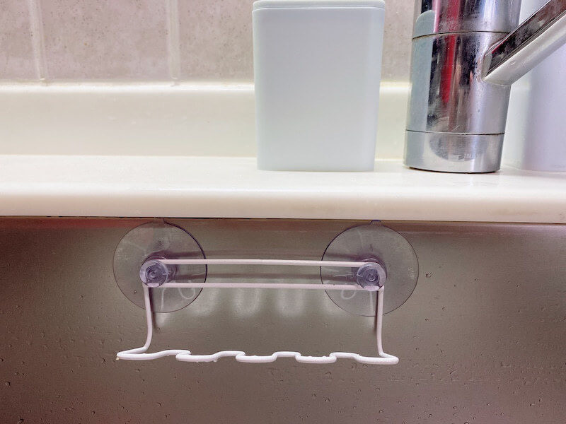 ズボラなわたしには、セリアよりもダイソーの「キャッチフック」が水回りのスポンジ収納にぴったりでした!