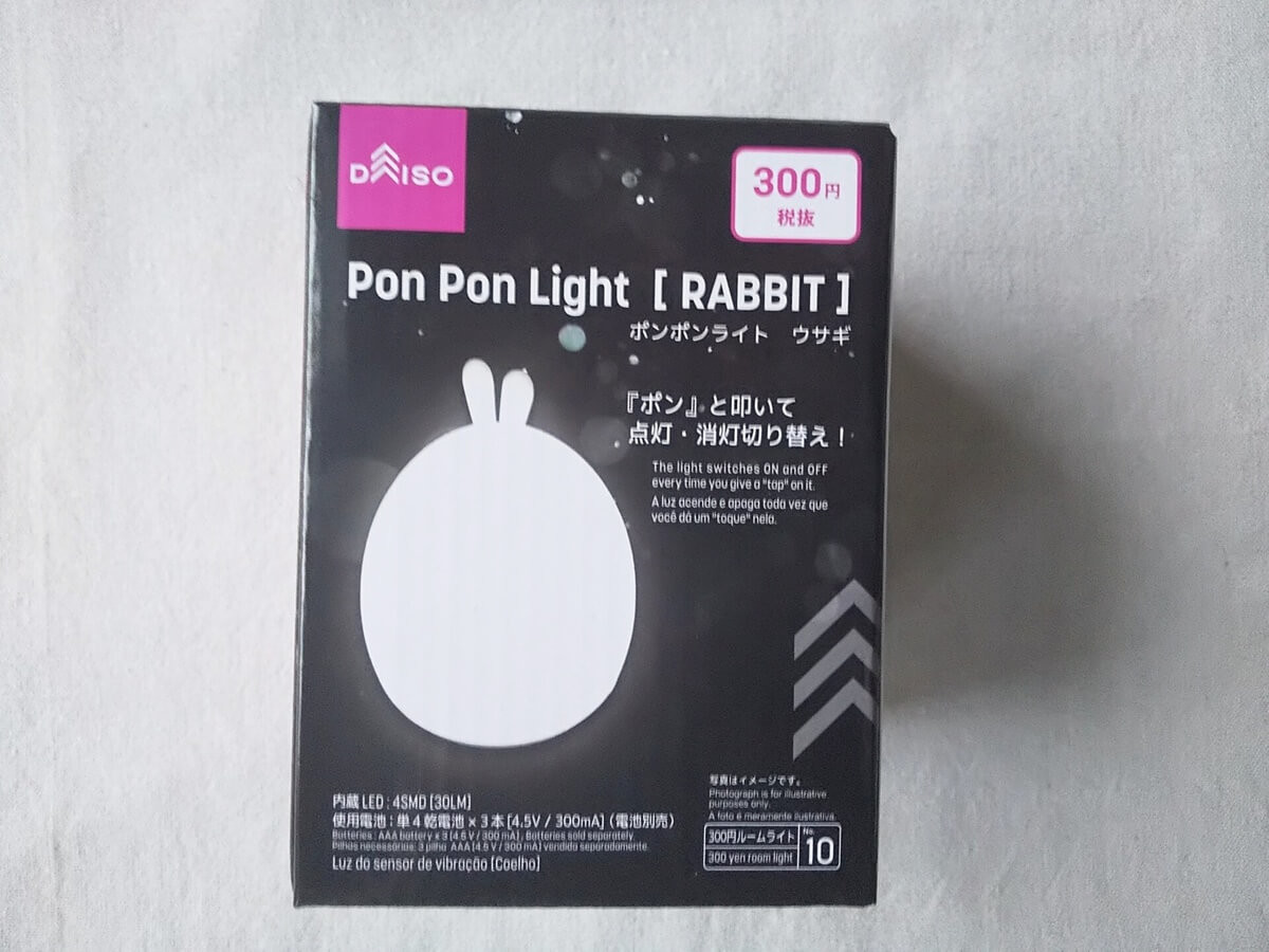商品名は「ポンポンライト」。100均にはミニライトが各種ありますが、シリコーン素材で柔らかいこと、ポンと叩いて点灯・消灯を切り替えるのが特徴です。