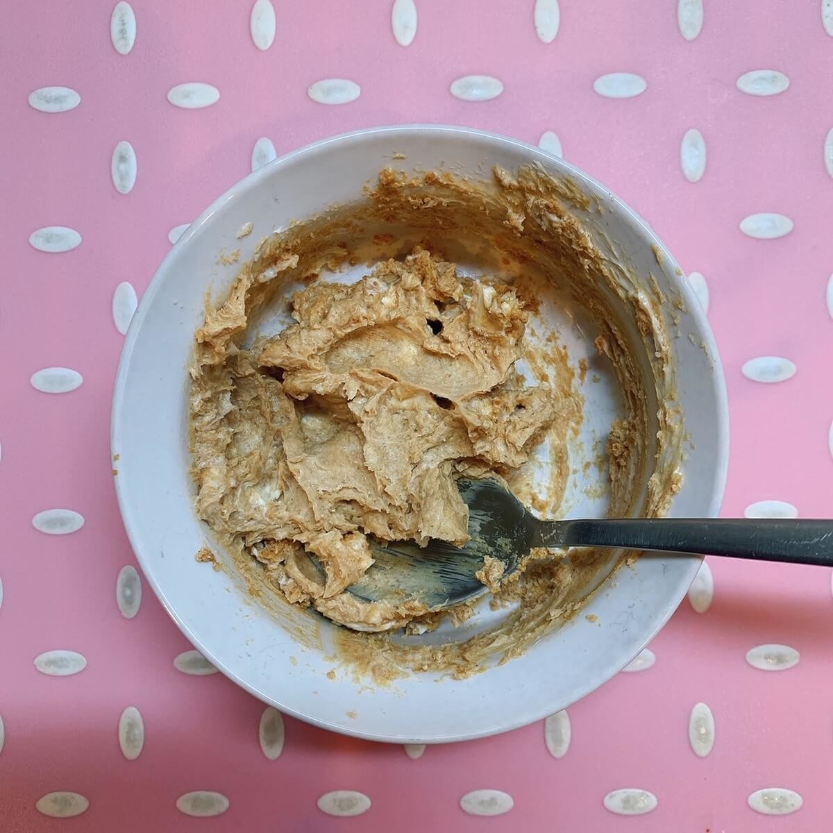 バター・きな粉・砂糖を器に入れ、ペースト状になるまでよく混ぜ合わせておきます。