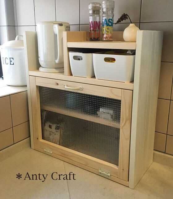 すりガラスの中には食器や食材を収納でき、上段にはスパイスや小さめのケトルも置けるほど収納力が高いのが最大の魅力!