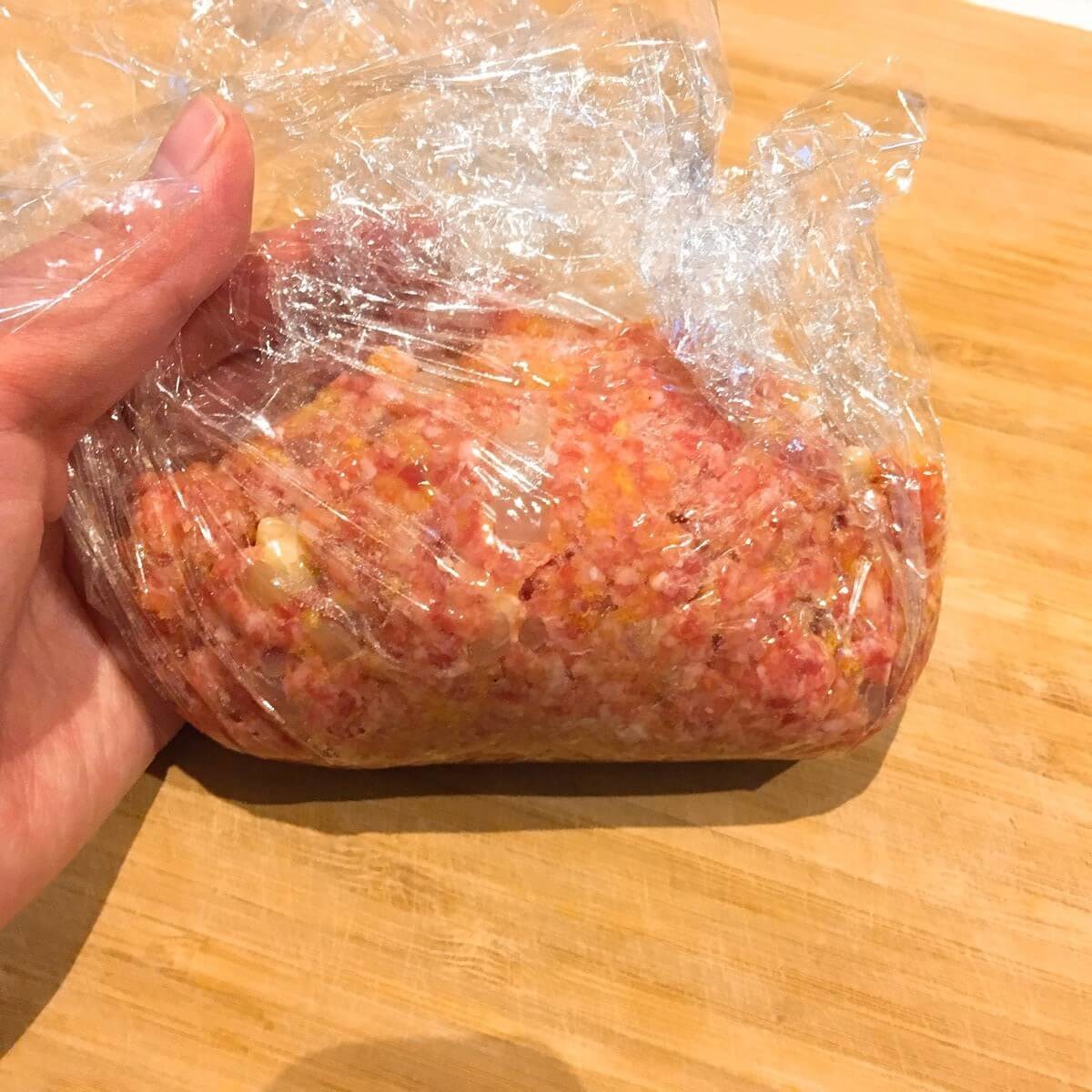 ハンバーグを作るときは、ラップを使うとも成形も簡単で手も汚れません!