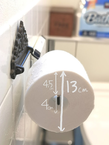 直径13cm、芯からの厚みは4.5cmですので、ご参考の上、ご自宅のトイレットペーパーホルダーをご確認くださいね。