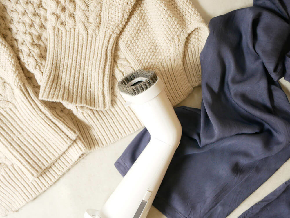 専用のブラシをセットして使えば、ニットやラグの毛流れを整えて毛玉を取りながらスチームをかけることもできます。シルクやレーヨンなどのデリケートな素材でも生地を傷めにくく、テカリを抑えふんわりと仕上がります。
