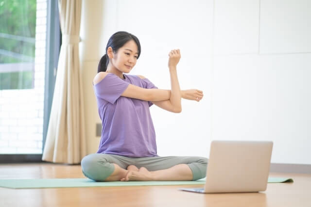 疲れやストレスによって、首や肩の筋肉は緊張しています。ストレッチをすることで首や肩の筋肉の血行を改善し、筋肉の緊張をほぐしてリラックスできるでしょう。