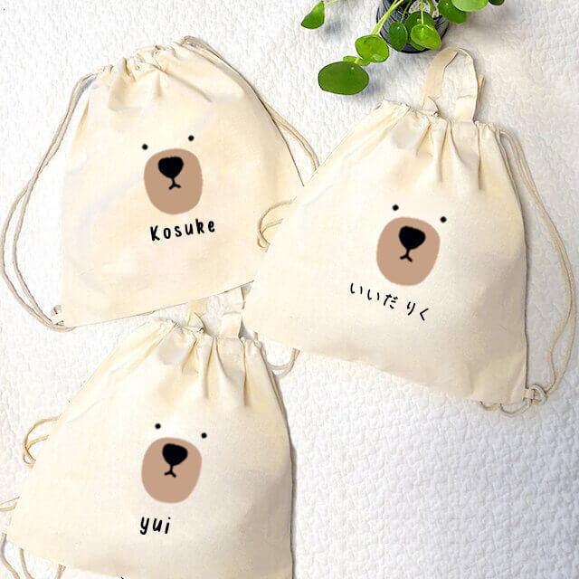 まず見た目にキュンキュンしちゃう、しろくまのお顔の「お着換え・体操服入れ」です。シンプルなのにこんなに可愛いアイテムなら、大人も欲しくなっちゃいますね。