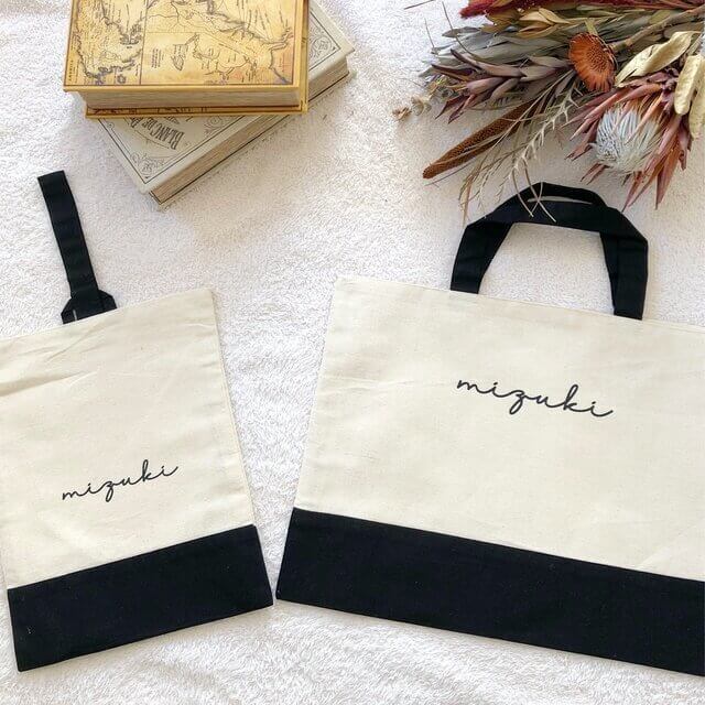 上履き入れとレッスンバッグは出番が多いので、綿100%で丈夫な造りなのも嬉しいポイント。柄のデザインが苦手な子どもや、名入りアイテムが欲しい方にもおすすめですよ!