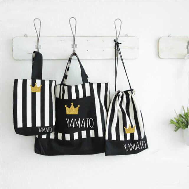 こちらの作品は、巾着・レッスンバッグ・上履き入れの3点から選べます。もちろん2点・3点セットと選択するのも可能です。必要なものだけを揃えられるのは、ママにとって嬉しいですよね!
