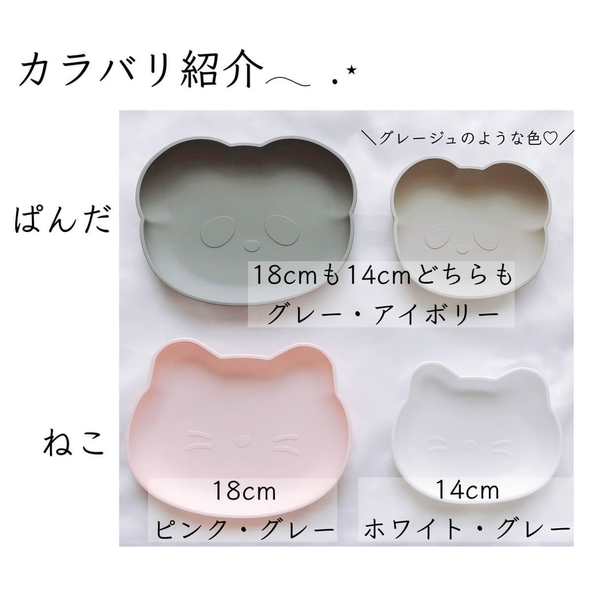 ぱんだ型14cm・18cm:グレー・アイボリー(アイボリーはグレージュのような色味です)