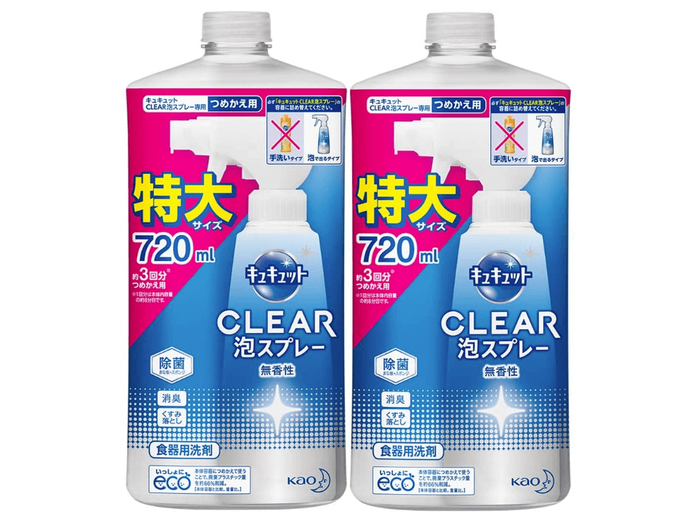 - キュキュット クリア泡スプレー 食器用洗剤 無香性 詰め替え 720ml×2個 Amazon販売価格2,005円