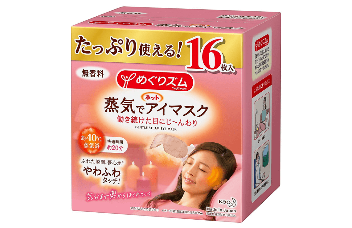 最後に紹介するのは、働き続けた目を心地よい蒸気で温めるアイマスクです。約40度の心地よい蒸気が20分程度続き、大切な目と目元をやさしく包み込みます。
