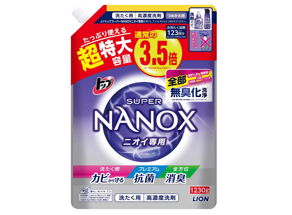 - トップ スーパーナノックス ニオイ専用 詰め替え 超特大1230g Amazon販売価格:764円