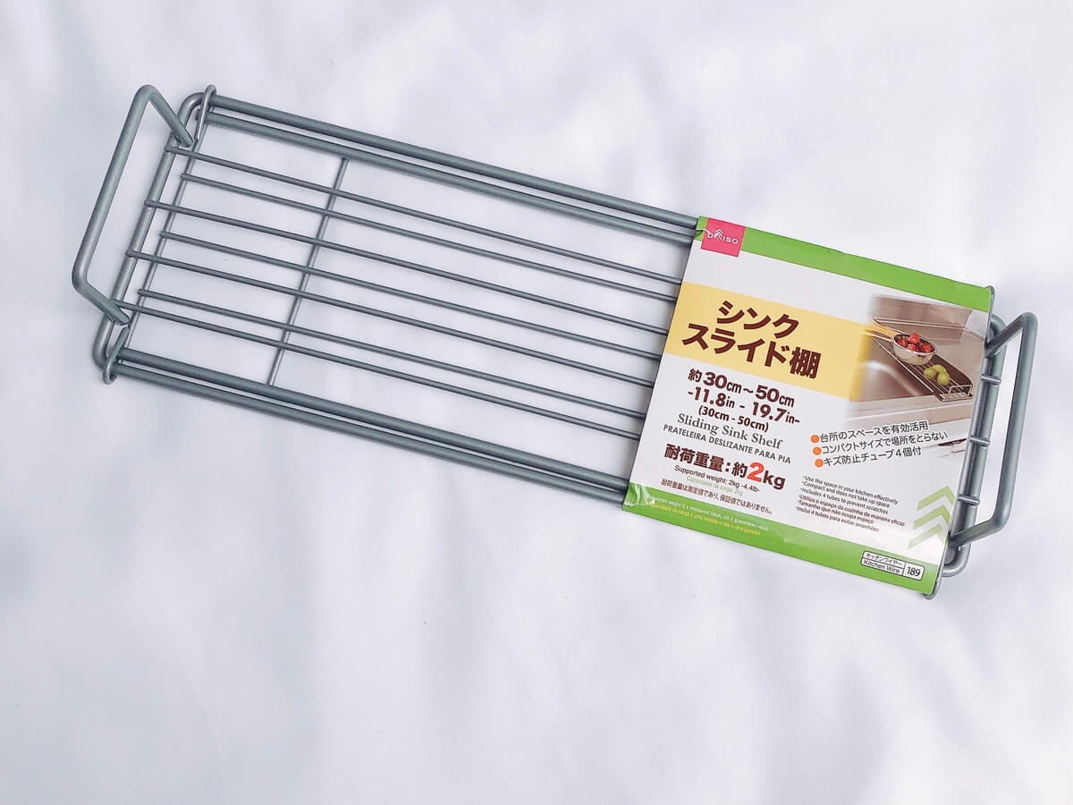 台所シンクの幅に合わせてスライドさせた棚を置くと…ちょっとした作業台に早変わり!