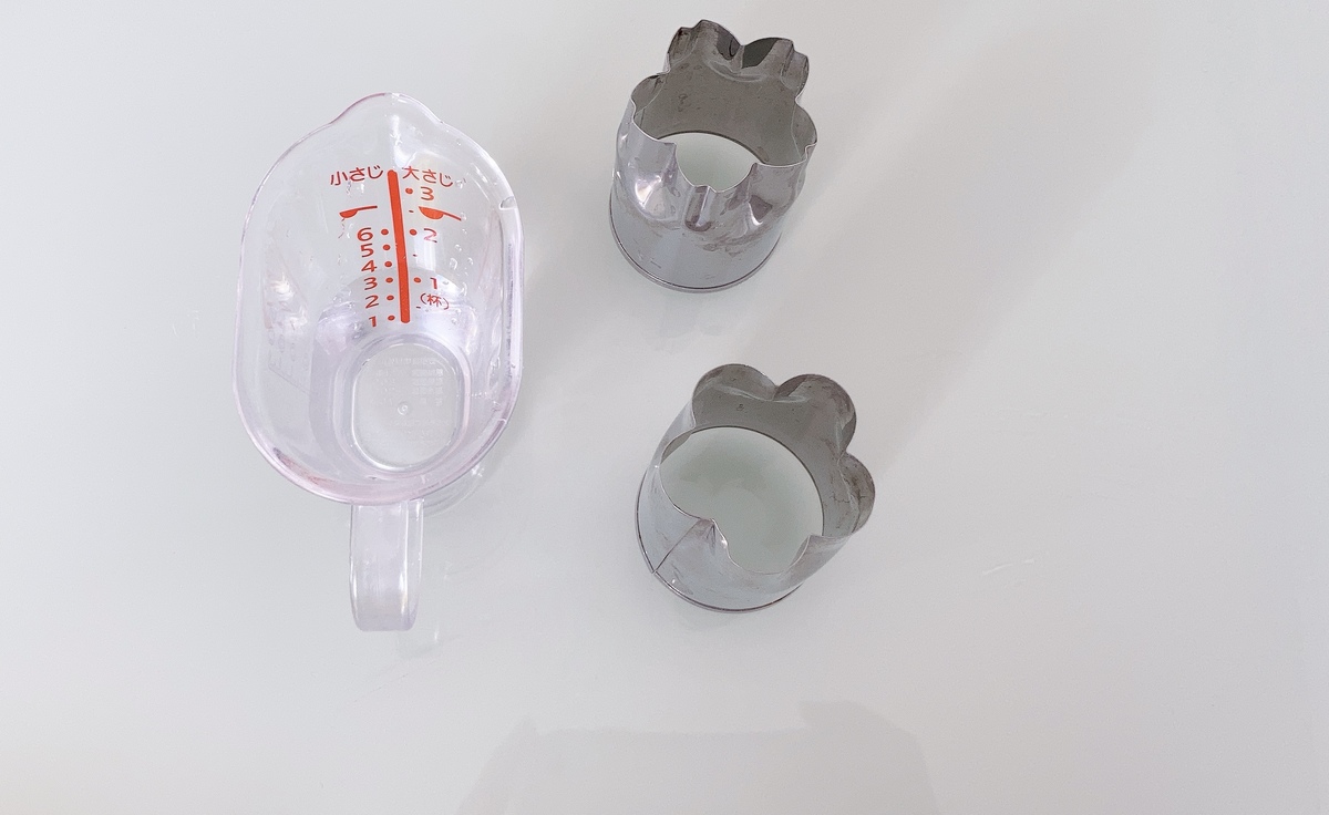 とりあえず書かれている通りに水15mlと昔100均で買ったクッキー型を用意しました。