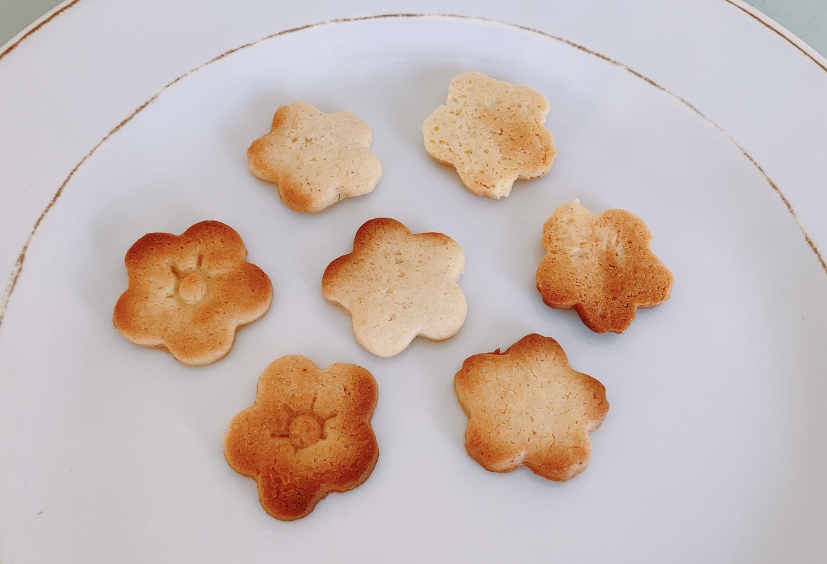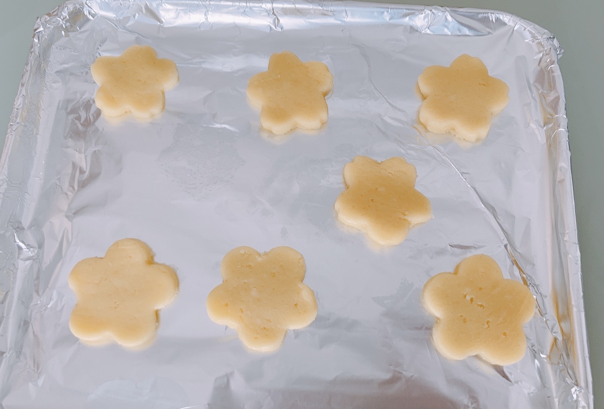 普段クッキー作りをするときは、クッキー生地が型にくっつかないように型抜き前に一度冷蔵庫に冷やすのですが、この生地はまとまりが良かったのでその手順は省いて型ぬきしました。
