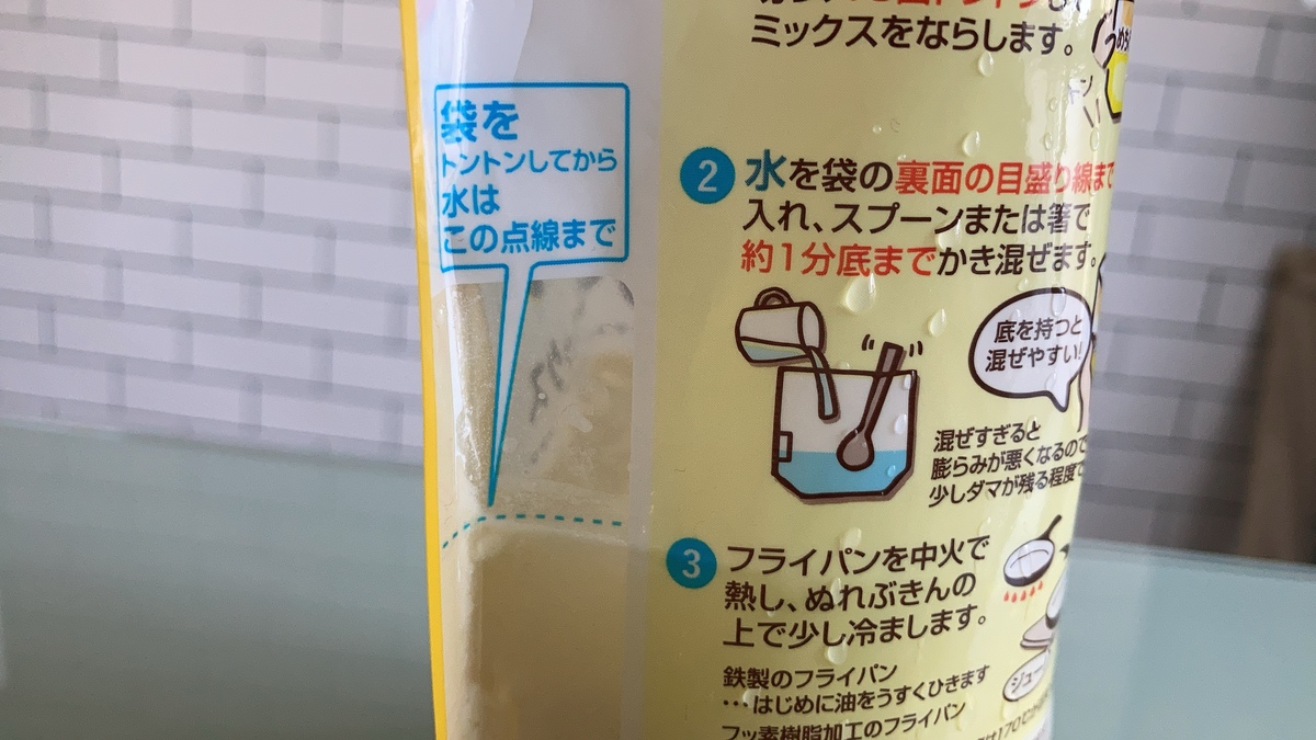 裏の材料の部分をみてみても書かれている材料はこのミックス粉以外には水のみ。